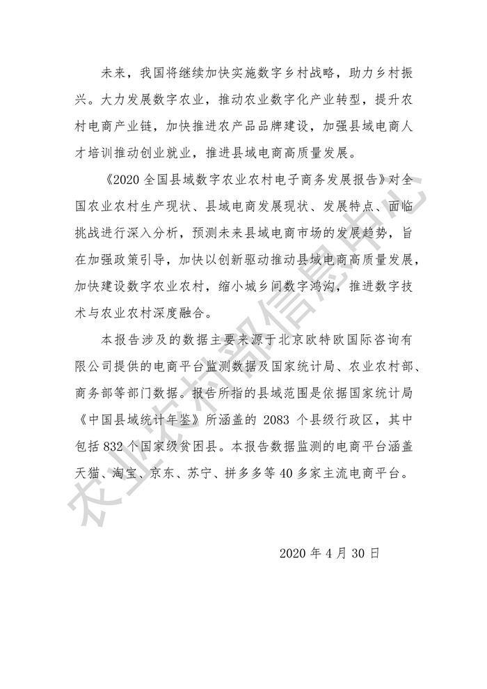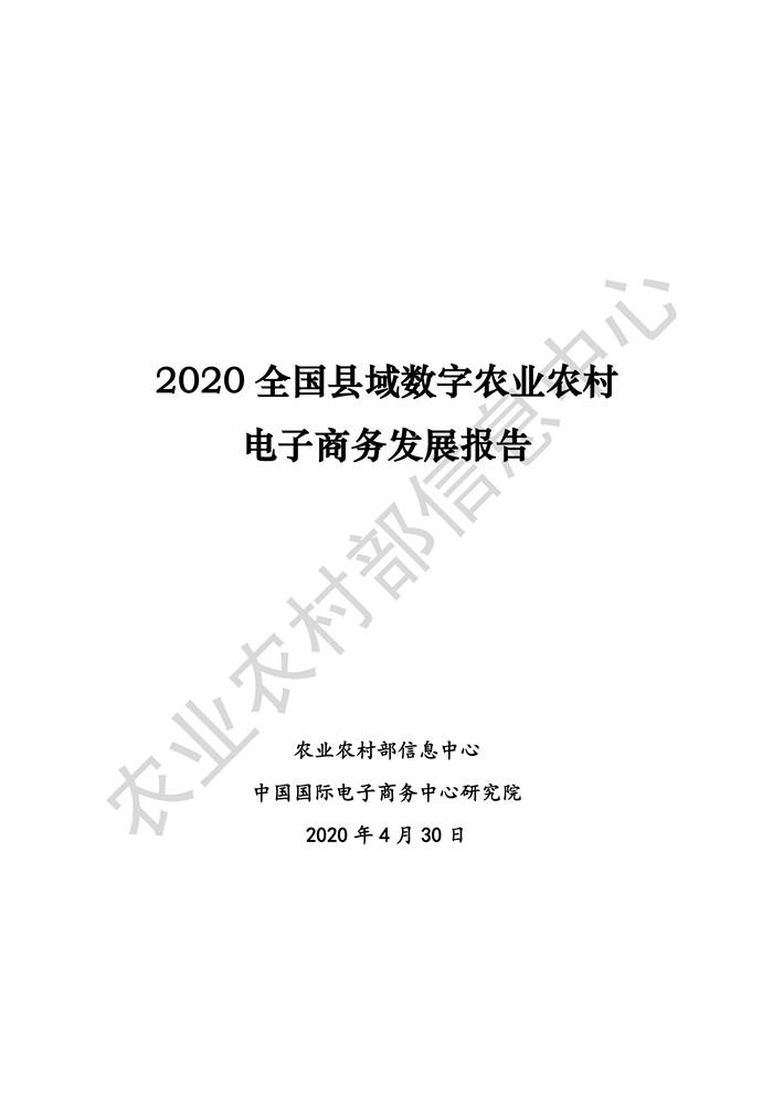 4月30日,農業(yè)農村部信息中心聯(lián)合中國國際電子商務中心研究院在京舉辦《2020全國縣域數(shù)字農業(yè)農村電子商務發(fā)展報告》線上發(fā)布會。