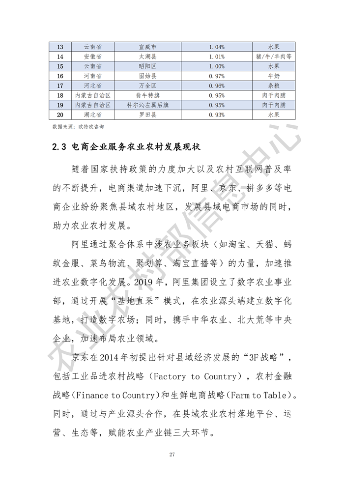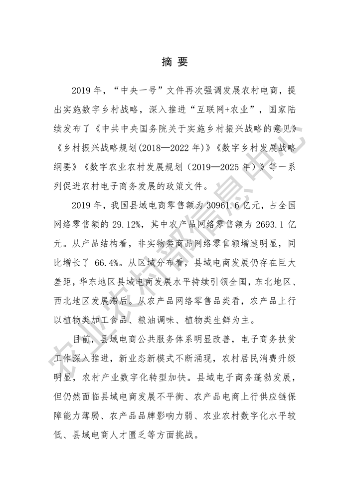 點擊查看完整報告:2020全國縣域數(shù)字農業(yè)農村電子商務發(fā)展報告.pdf