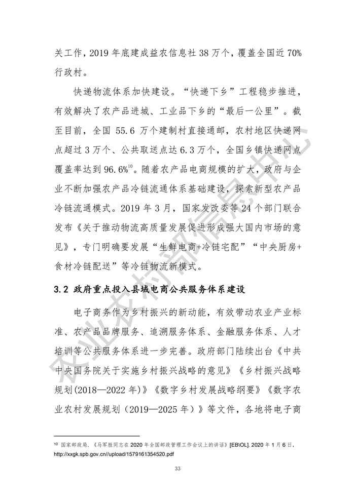 《2020全國縣域數(shù)字農業(yè)農村電子商務發(fā)展報告》發(fā)布(附全文鏈接)