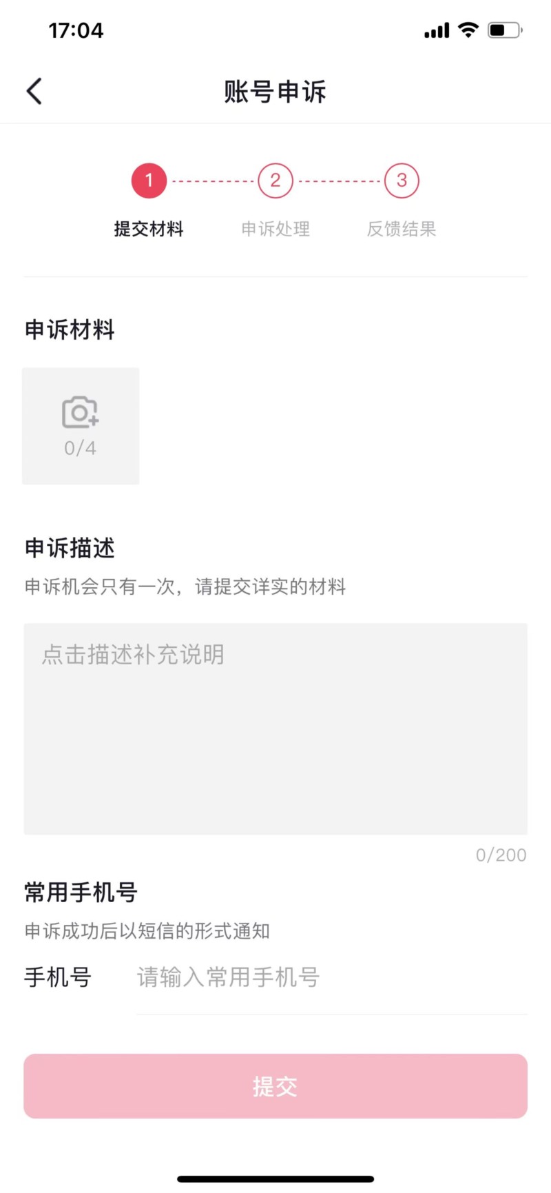 根據(jù)申訴類(lèi)型填寫(xiě)相關(guān)信息,并按照頁(yè)面提示提供必要的證明材料,比如個(gè)人身份證明、視頻證明等。